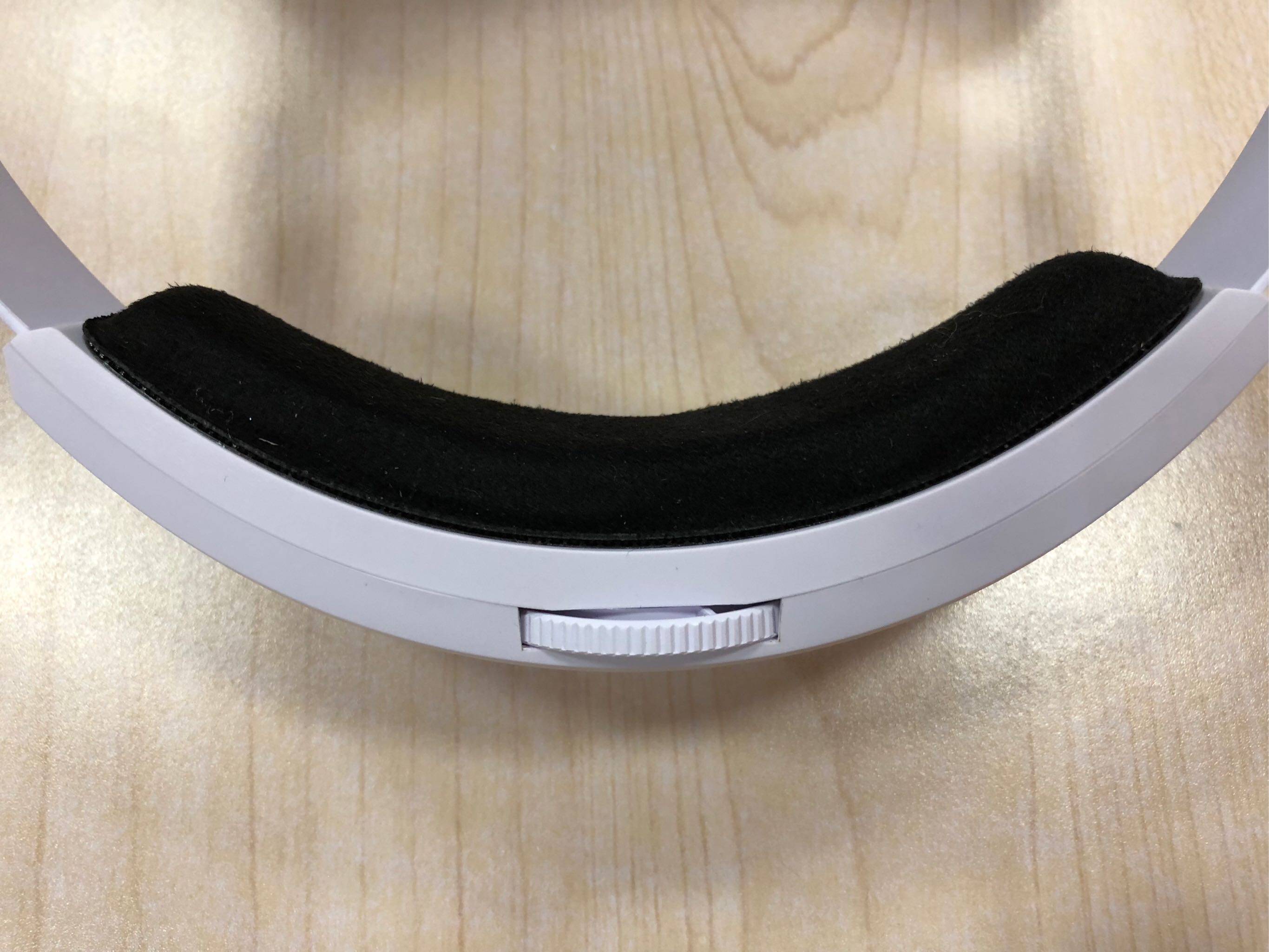 黑色滚轮下面的黑色按钮是用来解开头带和眼镜的 而白色滚轮,是用来调节头带大小的,适合各种头围。