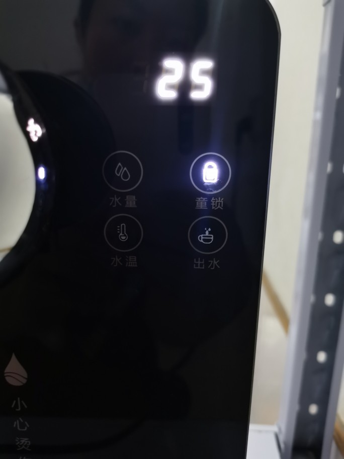 奥克斯饮水机有童锁设计,防止小孩误碰,这点对家长很友好。 按一下童锁按钮,按钮变不亮,才可以出水。
