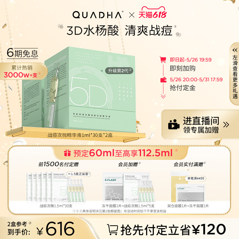 我是易长痘肤质,所以为了能改善脸上的痘痘问题,我去网上看了不少测评推荐,后来就在李佳琦直播间种草了这款夸迪5D玻尿酸次抛精华,说是有很不错的祛痘效果,就还挺心动的,然后就下单购买了一些。