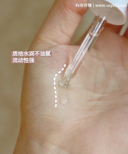 这款精华液的流动性挺强的,质地挺水润的,涂在脸上很清爽,一点也不黏腻,很好吸收。我的皮肤是混油,这款用起来也不觉得脸上很闷。我一般滴3-5滴,涂抹在面部,然后按摩一下,我会在有黑头的地方多按摩一会,让它吸收的更快,我用完的明显感觉就是脸很嫩,看起来很有水分,黑头感觉也没有那么多了。