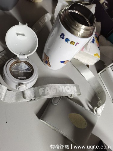 它是一键弹盖的开启设计,用起来还挺方便的,不用费力去钮开,而且它还是带吸管的,喝水的时候也不怕被烫到,吸管的材质也挺安全的,食品级的,不会说一烫就会变形。
